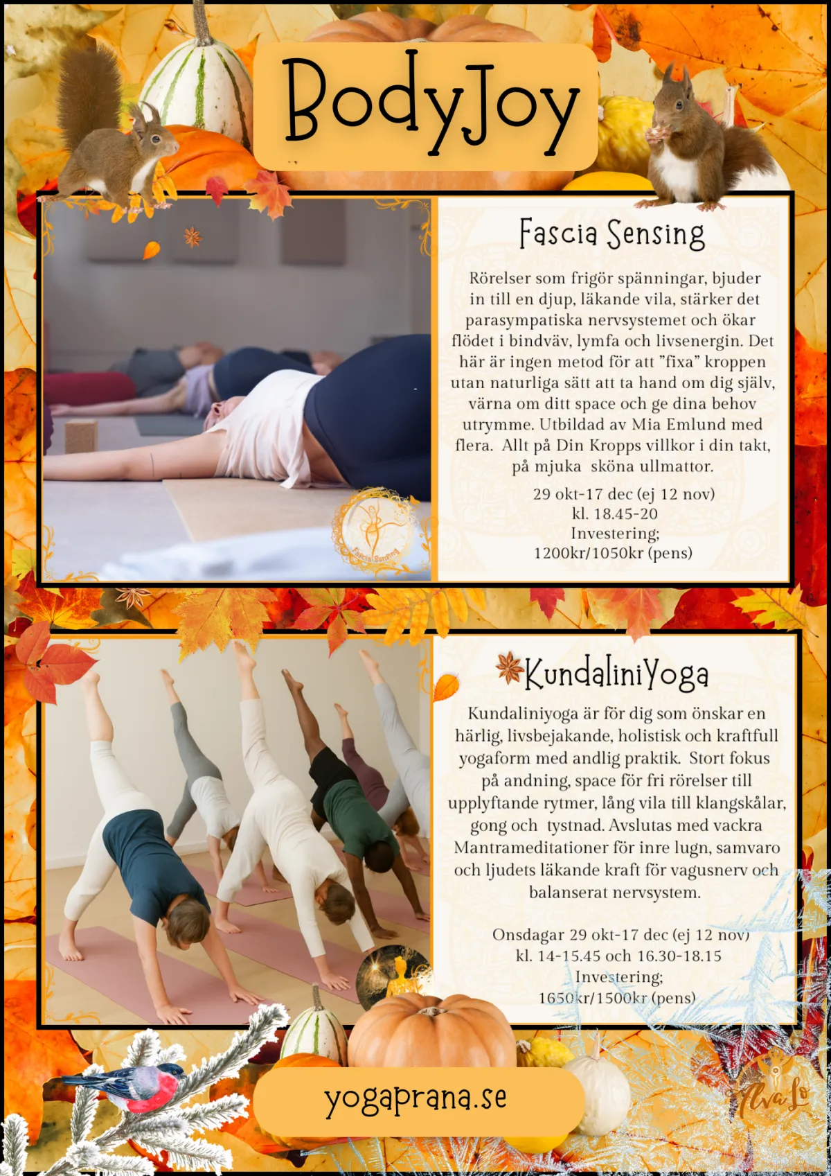 Om du av någon anledning missar ett yogapass är du välkommen att ta igen på antingen kundaliniyogan eller fascia sensing.
